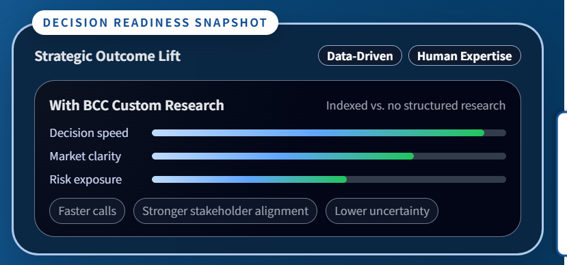BCC Researchは、「将来のビジネスと市場を切り拓くこと」を中核ミッションとする市場調査・カスタムリサーチ企業で、50年以上にわたり世界の主要組織から信頼され、意思決定に必要な重要インサイトを提供してきました。複雑化する世界情勢に対し、従来型の分析にとどまらず、より深い理解を追求しながら、企業・政府・学術機関が意義ある未来を形づくれるよう支援しています。提供価値は単なるデータではなく、正確で関連性の高い独自の洞察を実行可能な知見へと落とし込む「戦略的パートナー」であることに置かれ、科学・技術の最新動向を踏まえた高精度な調査で社会・市場・人々への理解を深めることを重視しています。米国マサチューセッツ州ボストンを拠点に、信頼できるデータ、予測、行動につながるインサイトを通じて、企業が新たな視点を得てターゲットを理解し、業界のリーダーになれるよう後押ししています。