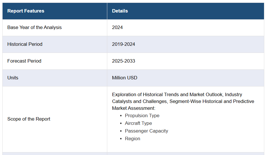 - IMARCのレポートは、2019年から2033年までのエアタクシー市場における様々な市場セグメント、過去および現在の市場動向、市場予測、市場力学に関する包括的な定量分析を提供します。