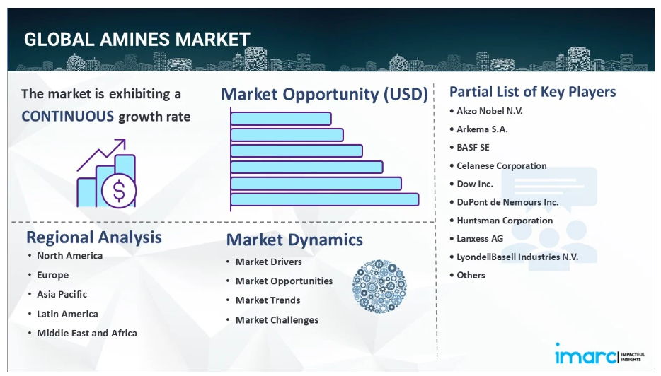 - 市場の進化: 産業がより持続可能な手法を採用し、バイオベースの生産方法に注力し、製品用途の革新を進めるにつれ、アミン市場は進化を続けています。化学製造における技術進歩と、様々な分野における特殊アミンへの需要増加が大きな変化を促し、市場の将来の方向性を形作っています。