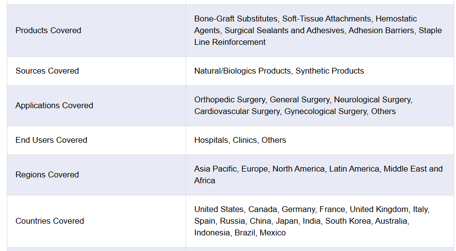 表1:グローバル:バイオサージェリー市場:主要産業ハイライト(2024年および2033年)