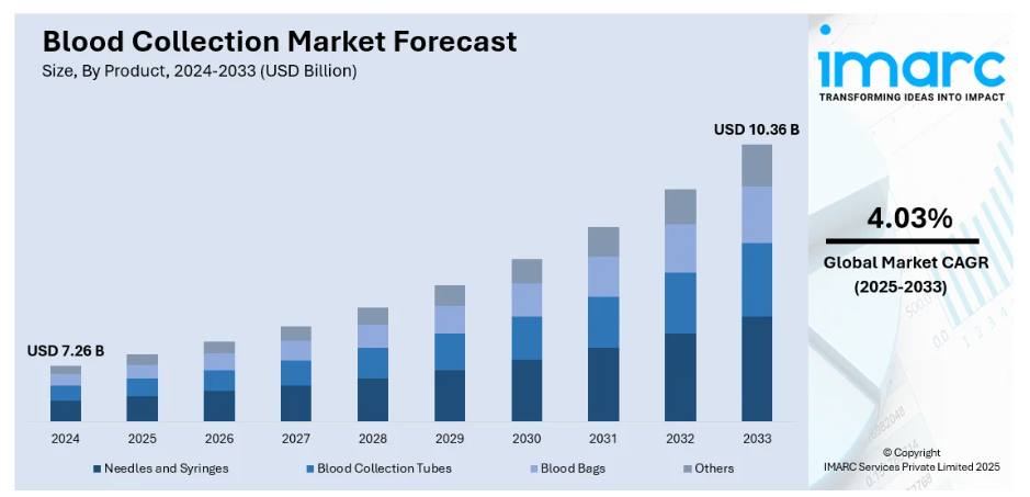 ◆英語タイトル:Blood Collection Market Size, Share, Trends and Forecast by Product, Application, End Use, and Region, 2025-2033