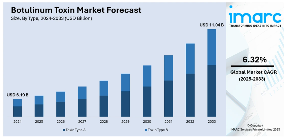 現在、しわの軽減や外見の改善を目的として、非外科的な美容治療を選択する方が増えており、これがボツリヌス毒素の需要を牽引しております。加えて、男女を問わず美容施術に対する認知度と受容度が高まっております。ボツリヌス毒素は、片頭痛、筋肉の硬直、多汗症などの医療的症状の治療においても、より多くの用途を見出されております。これに加え、人口の高齢化に伴い、美容目的と治療目的の両方における需要が増加しております。特に発展途上国における可処分所得の増加により、これらの治療がより手頃な価格になってきています。製剤の改良や治療選択肢へのアクセス向上も市場成長を支えています。