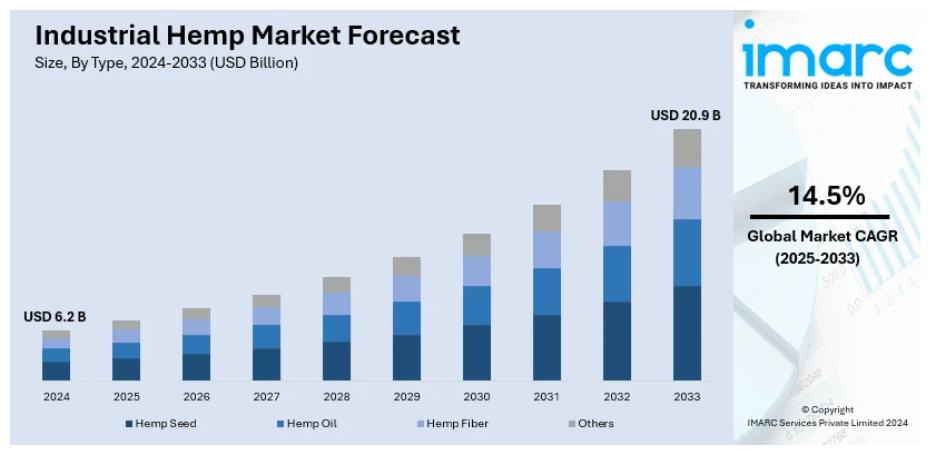 - IMARC社のレポートは、2019年から2033年までの産業用ヘンプ市場について、様々な市場セグメントの包括的な定量分析、過去および現在の市場動向、市場予測、市場ダイナミクスを提供します。