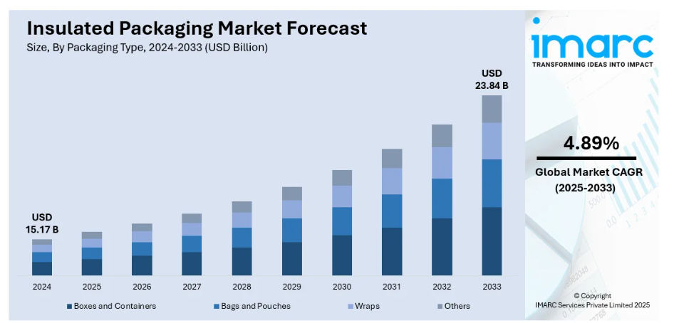 IMARC Groupは、世界の断熱包装市場における各セグメントの主要トレンド分析に加え、2025年から2033年までの世界・地域・国別予測を提供しております。市場は包装種類、素材種類、包装形態、用途に基づいて分類されております。