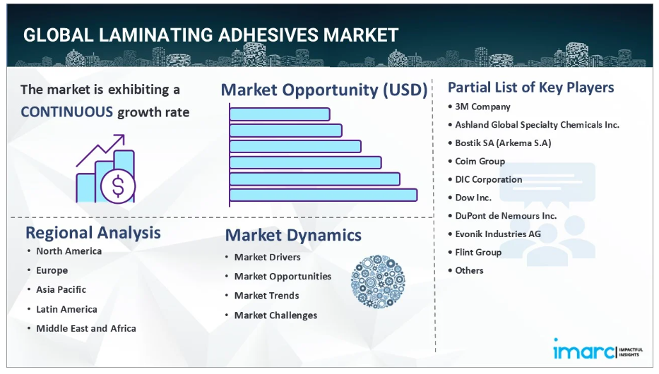 - IMARCの業界レポートは、ラミネート用接着剤市場について、2019年から2033年までの様々な市場セグメント、過去および現在の市場動向、市場予測、市場力学に関する包括的な定量分析を提供します。
