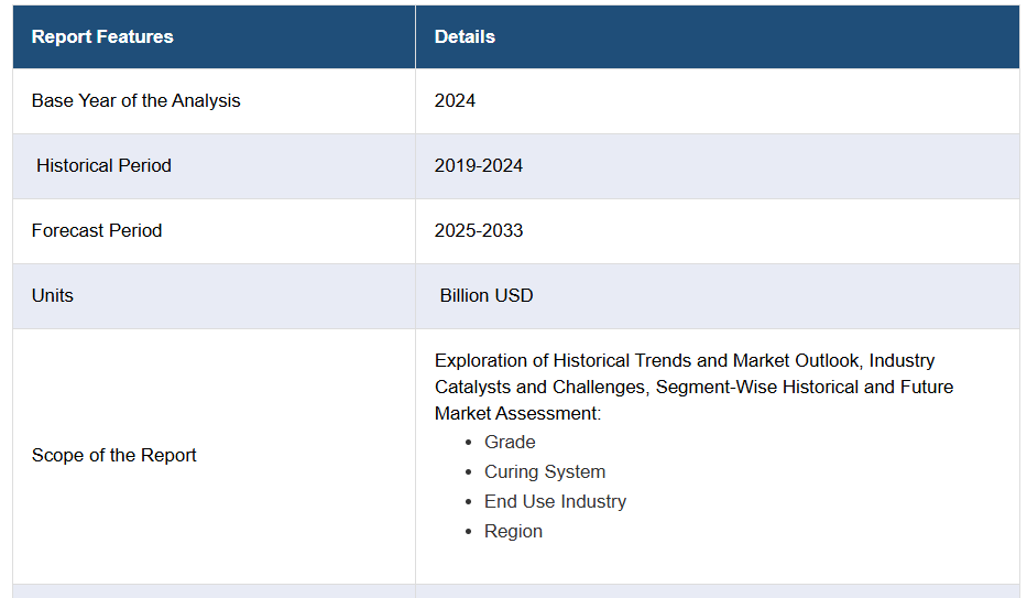 IMARC Groupは、各市場セグメントにおける主要トレンドの分析に加え、2025年から2033年までのグローバル、地域、国レベルでの予測を提供しております。本レポートでは、グレード、硬化システム、最終用途産業に基づいて市場を分類しております。
