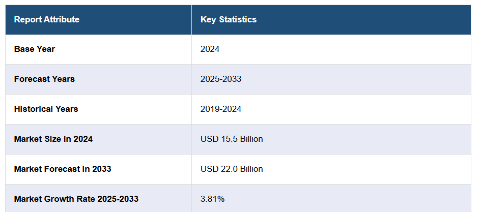 今後、IMARCグループは、2025年から2033年にかけての期間において、市場が220億米ドルに達し、年平均成長率(CAGR)3.81%を示すと予測しております。