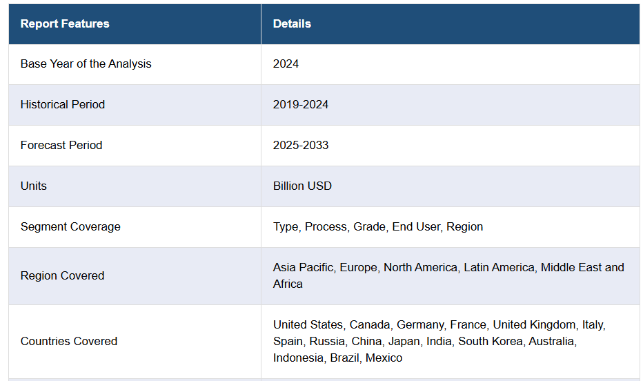 IMARC Groupは、グローバルポリオキシメチレン市場レポートの各サブセグメントにおける主要トレンド分析に加え、2025年から2033年までのグローバル、地域、国レベルでの予測を提供しております。当レポートでは、種類、プロセス、グレード、エンドユーザーに基づいて市場を分類しております。