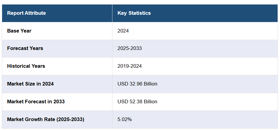 今後、IMARCグループは、2025年から2033年にかけて年平均成長率(CAGR)5.02%を示し、2033年までに523億8,000万米ドルに達すると予測しております。アジア太平洋地域は現在、市場を支配しており、2024年には48.7%の市場シェアを占めております。
