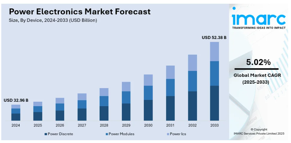 世界のパワーエレクトロニクス市場規模は、2024年に329億6,000万米ドルに達しました。