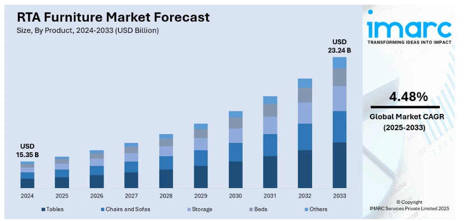 - IMARCのレポートは、2019年から2033年までのRTA家具市場における様々な市場セグメント、過去および現在の市場動向、市場予測、市場力学に関する包括的な定量分析を提供します。